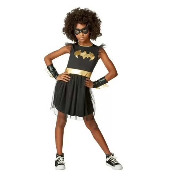 NWT DC Batman Batgirl Halloween Costume Dress Armbands Mask Girl's Medium New