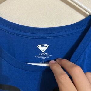 DC Superman t-shirt in bold blue. Features black accents. Iconic design.