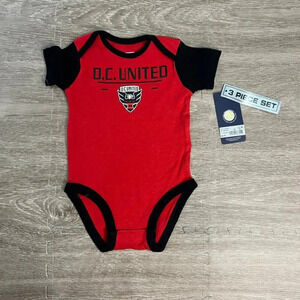 NWT D.C. United Newborn & Infant 3-6 Months 3-Pack Bodysuit Set Black/Red/Gray