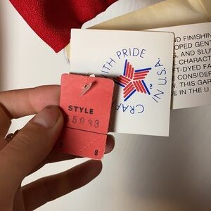 Amazing deadstock find from the 80s. Still new with tags & extra buttons. Crafted with pride in the USA. Adjustable tie back. Has shoulder pads but they can be cut out.