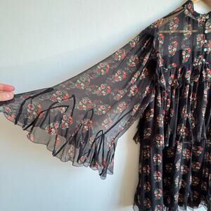 Details: NWT DÔEN’s ‘Alette’ dress is made from lightweight silk-georgette that’s left unlined through the billowing sleeves. Printed with tiny bouquets of flowers, it has flouncy, ruffled tiers that create movement with each step.