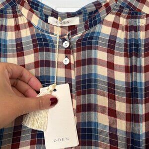 NWT DÔEN Edlynne Plaid Balloon-Sleeve Midi-Dress Size M