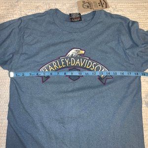 BRAND NEW WITH TAG HARLEY TEE IN GREAT SHADE OF DENIM BLUE. MEASUREMENTS IN PHOTOS.