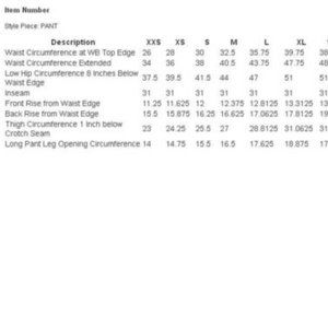 Semi-fitted; classic waist; straight leg; XXS thru 3X inseam measures 31"
