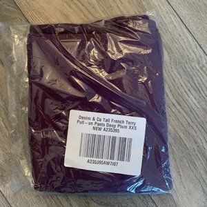 NWT (NEW IN BAG) DENIM & CO. ACTIVE FRENCH TERRY PULL-ON PANTS COLOR DEEP PLUM SIZE XXS (TALL).