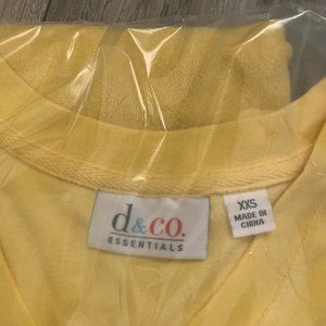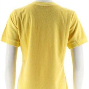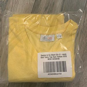 NWT (NEW IN BAG) DENIM & CO. SHORT SLEEVE V-NECK KNIT TERRY TOP SIZE XXS. COLOR IS SUN YELLOW.