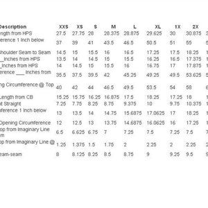XXS(00-0), XS(2-4), S(6-8), M(10-12), L(14-16), XL(18-20), 1X(18W-20W), 2X(22W-24W), 3X(26W-28W)