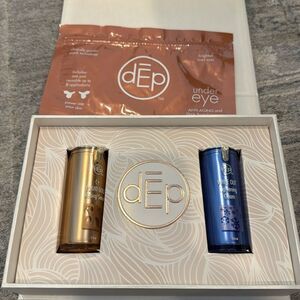 Brand new in box dep under eye anti-aging and dark circle corrector this kit includes one eyepatch set reusable up to eight applications, 1C liquid gold infusion serum, one wideout, lightning cream and a magnetic keepsake box
