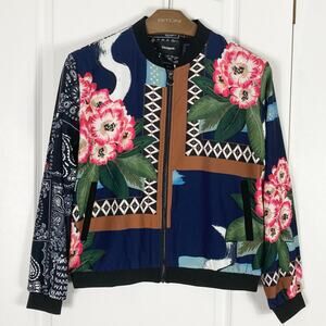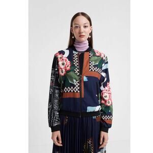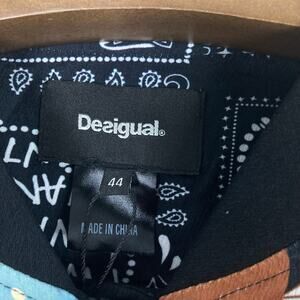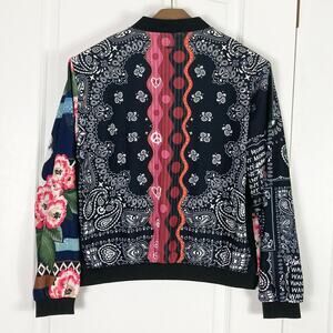 NWT DESIGUAL Bomber Jacket 44~M Floral Paisley Patchwork Graphic Writing Logo