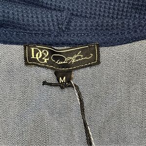 NWT DG2 Diane Gilman Indigo Blue Twill Knit Denim Combo Draped Jacket Size Med