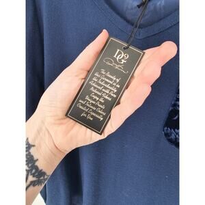 NWT DG2 Women's Blue Round Neck Hi-Low Hem Velvet Knit Mixed Top Size 1X
