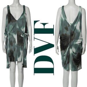 NWT DIANE VON FURSTENBERG Milton Green Watercolor Wrap Sheath Cocktail Dress, 10