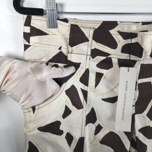 NWT DIANE von FURSTENBERG SILK Blend Capri Floral Giraffe Print Pants with Pockets Size 10