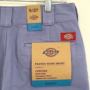 *NWT* DICKIES Juniors High Rise Frayed Work Short Blue, size 5/27. Frayed hem. Brand new with tags.