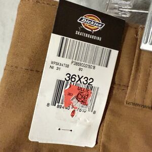 NWT DICKIES Skateboarding Slim Fit Twill Pants Men 36x32 (*36x31) Tan Brown Duck