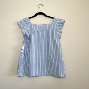NWT DIP Striped Flutter Sleeve Square Neck BabyDoll Boho Blouse Beach Women's M