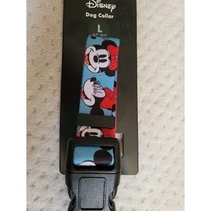 PRODUCT FEATURES Adjustable collar Buckle and D-ring Repeating different cute facial expressions of Minnie Mouse! The reverse side of the collar has a repeating "MINNIE MOUSE" script! DETAILS Large: Collar width: 1", Neck girth: 15.7"-25.4", Recommended weight up to 90 lbs Spot clean