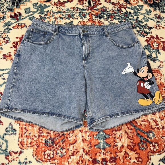 NWT DISNEY PLUS SIZE 22 PLUTO & MICKEY MOUSE DENIM SHORTS.