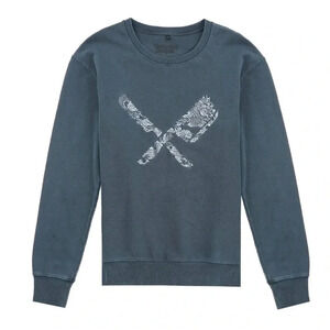 NWT DISTORTED PEOPLE Dragon Blades Ornament Steel Blue Crewneck Sweater