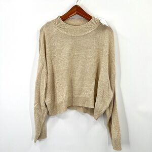 NWT DIVIDED H&M Woman's Beige Long Sleeve Oversized Cropped Sweater Size XL