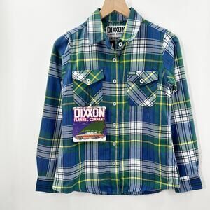 NWT DIXXON Women's Flannel Shirt The Griswold in Blue Yellow Green Plaid Size S