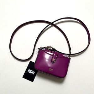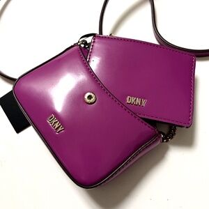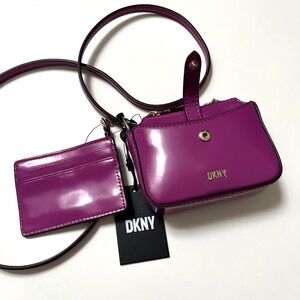 NWT DKNY 2pc Thomasina Micromini Crossbody Bag + Matching Card Case Fuchsia Pink