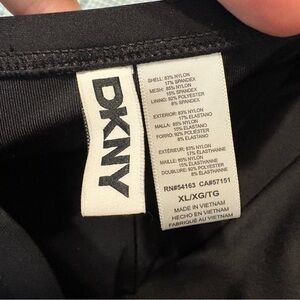 New DKNY black ruched one piece strapless swimsuit with padding. Size XL. No flaws, missing original hygiene liner. Includes straps.