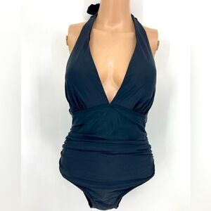 NWT DKNY Tie-Back Halter Shirred Tummy Control Black Swimsuit Size M/10