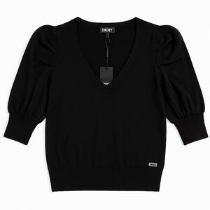 This NWT DKNY black puff sleeve sweater is designed with chic voluminous sleeves and a flattering V-neckline, this sweater perfectly blends modern style with timeless sophistication.