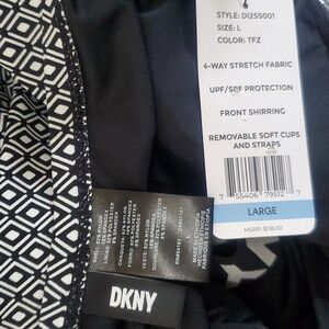 DNKY Black and White swim. size L 4-Way Stretch Fabric. UPF / SPF PROTECTION FRONT SHIRRING. REMOVABLE SOFT CUPS AND STRAPS. CAN BE WORN AS STRAPLESS 💥Reasonable offers welcome 💥BUNDLE DISCOUNT OF 15% WITH 3 OR MORE ITEMS!! J,,,3