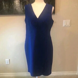 NWT DKNY Blue Women's V Neck Side Snap Skirt Compression Sheath Dress-Size 14