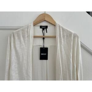 NWT DKNY Cotton Blend Long Open Cardigan Womens Size Medium Ivory White