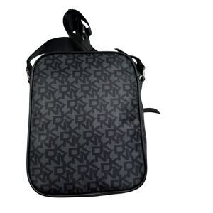 NWT DKNY Gigi Flight Crossbody Bag Double Zip Black Nylon Monogram Purse