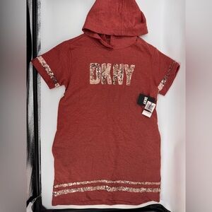 NWT DKNY Girls' Dress - Short Sleeve Oversize T-Shirt Dress with Hood L 12