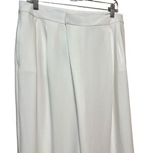 New with tags, Really comfy, White, high rise waist approx 14”, inseam 28”, waist laid flat 16”, total length approximately 43”, I am a size 12/14 pant and 5’9, pants and they fit perfect, are fully lined and asymmetrical front is flattering, they are tagged size 12 Petite but I don’t know how they can be petite, nothing about me is petite ☺️ minimalist, modern contemporary, can be business work suiting or casual, great for vacation