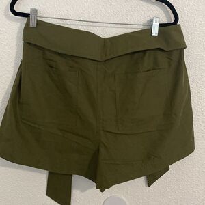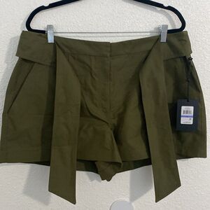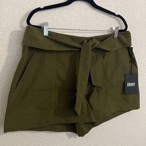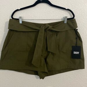 NWT- DKNY- High waisted -tie chino shorts- Dark Green- Size 18