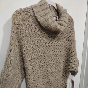 NWT DKNY Jeans Women's Tan Mohair Wool Blend Slouchy Cowl Neck Sweater Sz S Y2K