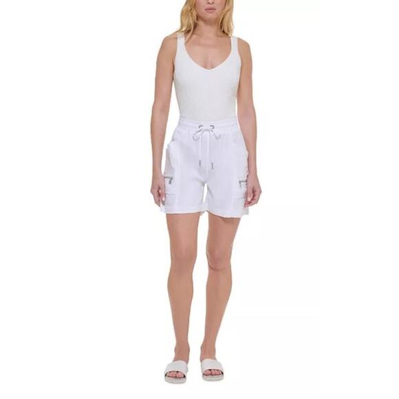 NWT DKNY Linen Blend Cargo Shorts, White, size 1X, Plus Size, Pull-On Drawstring
