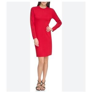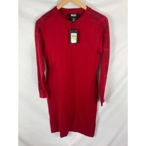 NWT DKNY Logo Long Sleeve Knit Sweater Dress Red Size Medium