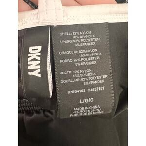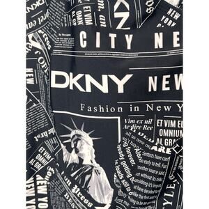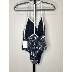 NWT DKNY Newsprint Graphic T-Back One-Piece Swimsuit Black/White Women's Large