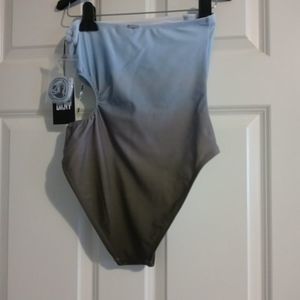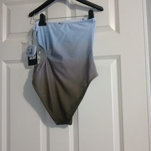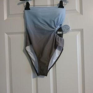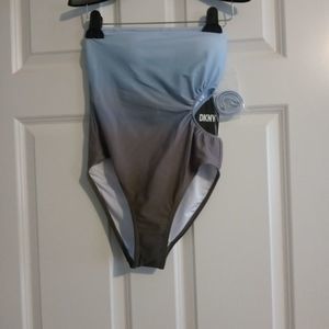 new with tags DKNY Ombre two tone blue and Grey side cutout strapless with removable/ adjustable around the neck strap Swimsuit. removable soft cups, hygienic liner still attached. size 4 in women's Open to reasonable offers!