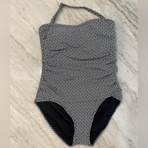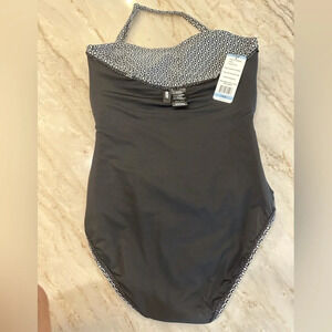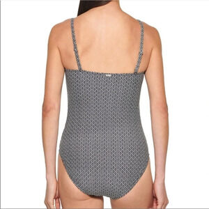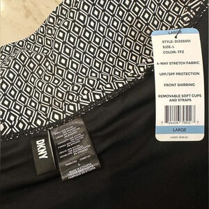 NWT DKNY One Piece Swim Suit Black and White Geometric Print Women’s size L
