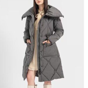 NWT DKNY Pillow Collar Diamond Quilt Long Puffer jacket with oversized