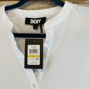 NWT DKNY Puff-Sleeve Ribbed Henley Shirt