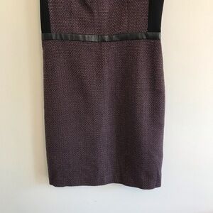 Features: Deep Purple Tweed Sheath Dress, leather style waist band, zipper back closure,