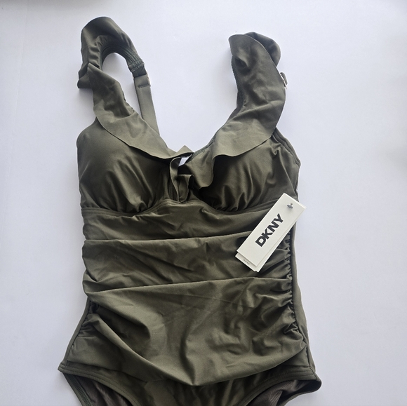 NWT DKNY Ruffled Plunge Tummy-Control One-Piece Swimsuit - Small