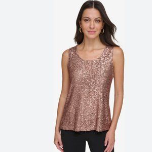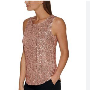 Turn heads on your next night out in this chic and sparkling sequin-covered tank top from DKNY.
