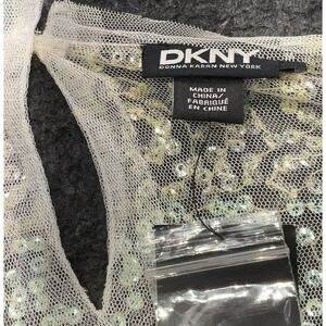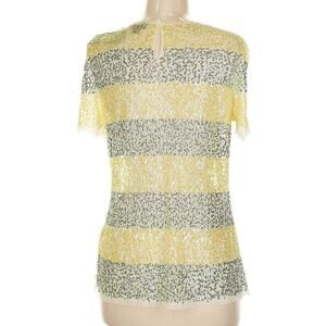 NWT DKNY Sequins & Rhinestones Embellished Top Yellow Striped Sheer Stretch Sz M