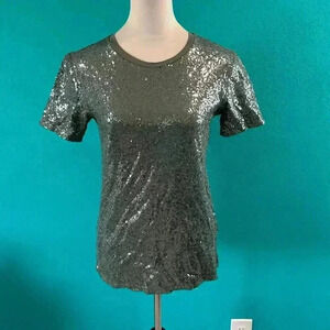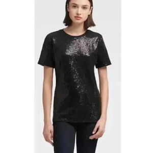 NWT DKNY Short Sleeve Dark Gray Sequin Crew Neck Tee Shirt Size XS