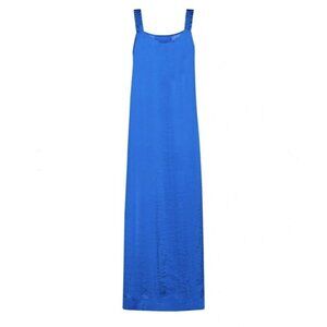 NWT DKNY Silky Satin Maxi Dress SMALL blue Sleeveless V-Neck soft
